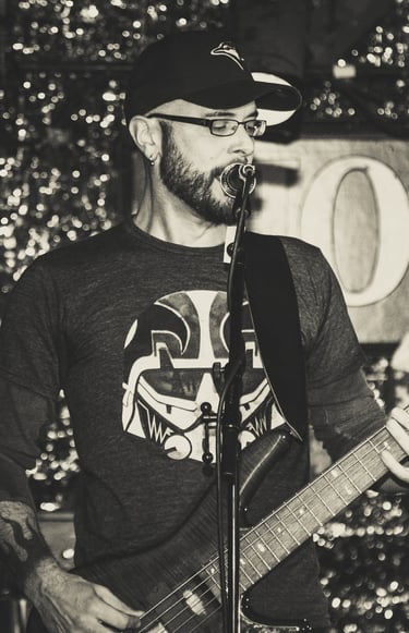 Phil is an experienced acoustic guitar player and lead/backup vocalist. His up-tempo playing style contributes to the energy of the The Devil's Drink and often leads to sore joints at the end of the night. Phil is always investigating new glam rock ballads to bring to the setlist and manages to sneak them in from time to time.